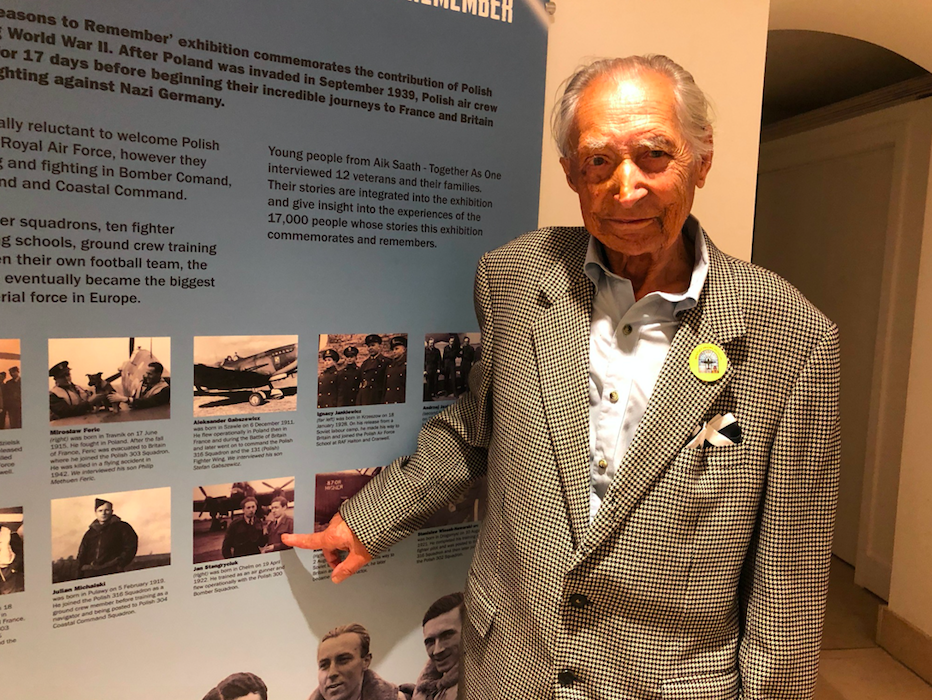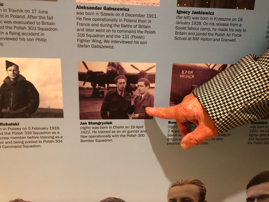 Jan Stangryciuk pokazuje swoje zdjęcie jako lotnika z 300 Dywizjonu Bombowego. Kolekcja Bentley Priory Museum. Zdjęcie: British Poles