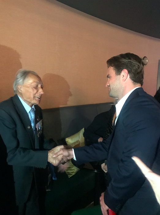 an Stangryciuk z Milo Gibsonem, odtwórcą jednej z głównych ról na londyńskiej premierze filmu “Hurricane – Squadron 303”. Zdjęcie: British Poles