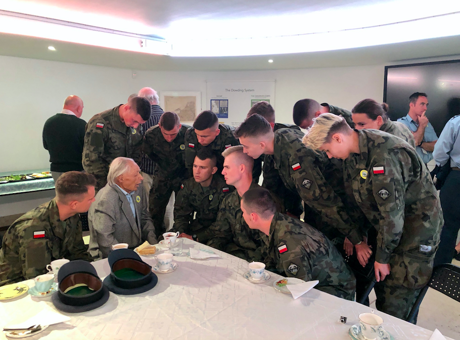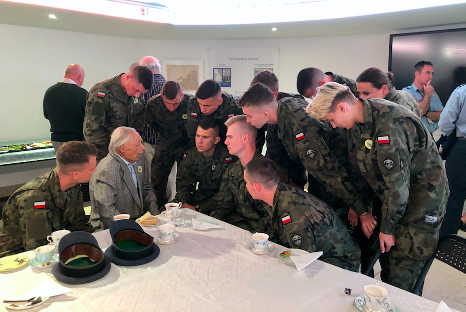 Jan Stangryciuk dzieli się swoimi wspomnieniami z kilkunastoma kadetami ze Lotniczej Akademii Wojskowej w Dęblinie. Bentley Priory Museum, główna kwatera dowództwa myśliwców RAF w czasie Bitwy o Anglię w 1940 roku. Zdjęcie: British Poles