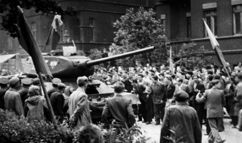On May 30th, 1953, there were workers’ riots in the Skoda arms factory in Pilsen (Plzenské povstání) which was put down by security forces. On June 17th, 1953, construction workers in East Berlin began protesting against raised work quotas. A wave of strikes and demonstrations swept through 272 towns and districts of DDR, with democratic elections being one of the demands. The protests were violently suppressed by Soviet tanks. All these upheavals were triggered by workers’ discontent with their poor living standards and the governing communist parties were perceived as the main cause of this.
