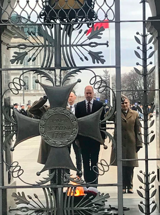 During his second day in Poland, Prince William paid tribute to fallen Polish soldiers by laying a wreath at the Tomb of the Unknown Soldier in Warsaw’s Piłsudski Square. This monument was dedicated to the memory of Polish soldiers who had lost their lives in wars. During their state visit to Poland in 1996, Her Late Majesty Queen Elizabeth and The Late Duke of Edinburgh Prince Philip also laid a wreath at the Tomb.