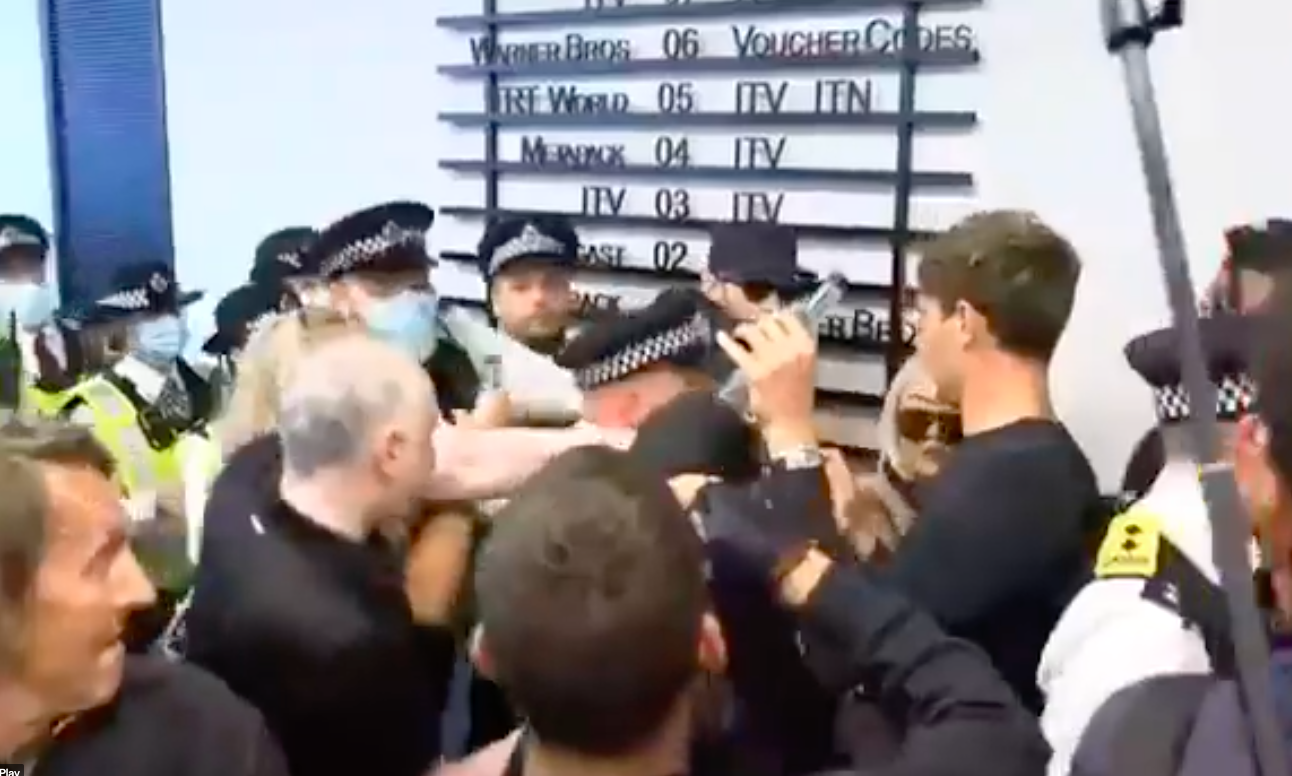 Do zdarzenia doszło po proteście przeciwko szczepieniom i restrykcjom covidowym, który odbył się w Londynie. Na zamieszczonych w mediach społecznościowych nagraniach wideo widać grupę protestujących, którzy próbują dostać się do biurowca w londyńskiej dzielnicy Camden, oraz ich szamotaninę z próbującą im w tym przeszkodzić policją. Jednak sporej grupie – jak podają media, ponad 100 osobom – się to udało. Na jednym z nagrań słychać, jak uczestnicy zamieszek znieważają prowadzącego przez wiele lat wiadomości w Channel 4 dziennikarza Jona Showa.