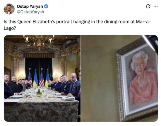 The painting, depicting the Queen in her later years, now hangs prominently in the main dining room of the Palm Beach estate, a room frequently used to host high-profile political figures, donors and international guests. Its placement is widely interpreted as a deliberate gesture, ensuring that the Queen remains symbolically present at the heart of Mar-a-Lago’s public life.