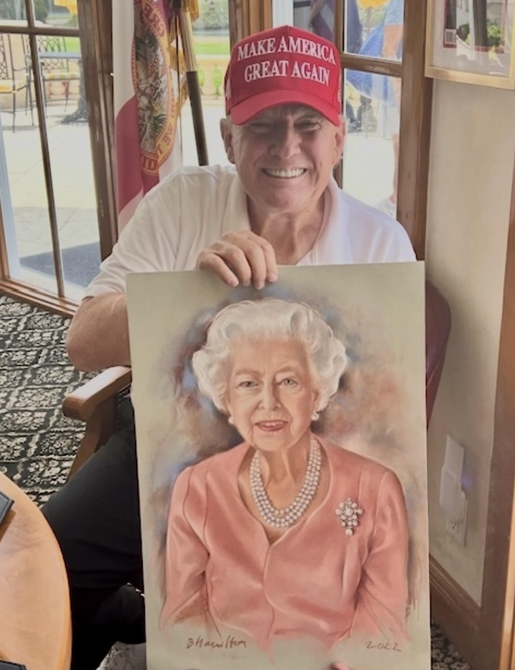 The painter had previously been commissioned by Sir Mick Jagger, who later presented Trump with a reproduction of the Queen’s portrait as a personal gift. That exchange ultimately led to the decision to acquire and display the artwork at Mar-a-Lago.