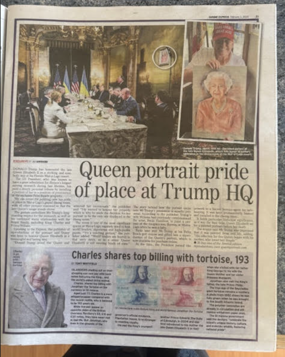 The painting, depicting the Queen in her later years, now hangs prominently in the main dining room of the Palm Beach estate, a room frequently used to host high-profile political figures, donors and international guests. Its placement is widely interpreted as a deliberate gesture, ensuring that the Queen remains symbolically present at the heart of Mar-a-Lago’s public life.