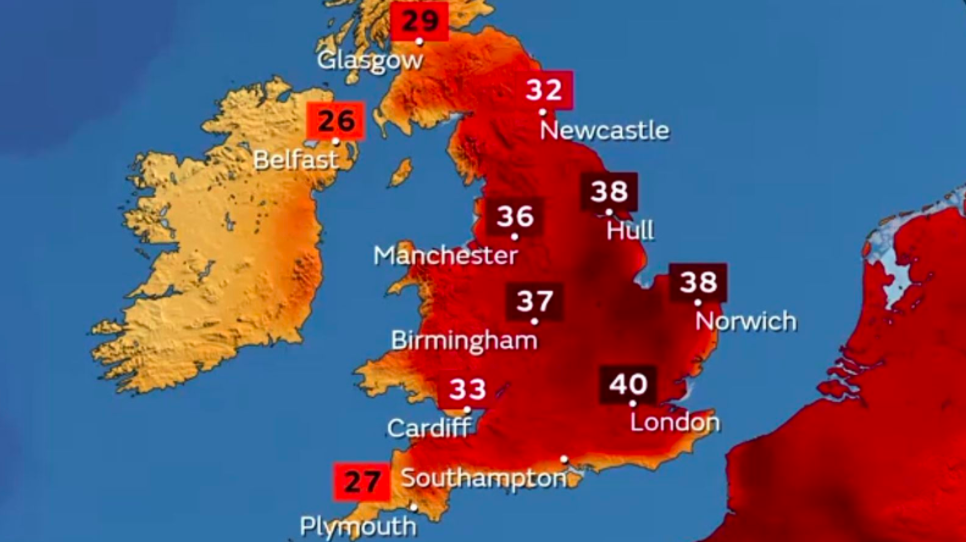 The red extreme heat weather warning is in effect from Monday 12.00 and will last until Tuesday at 11.59 p.m. Residents of the cities mentioned above are encouraged not to travel on Monday and Tuesday, when temperatures are expected to exceed 40 °C. Forecasts predict there is an 80% chance that the UK’s record for the highest ever temperature of 38.7C set in 2019 will be broken on Tuesday when the current heatwave reaches its peak.