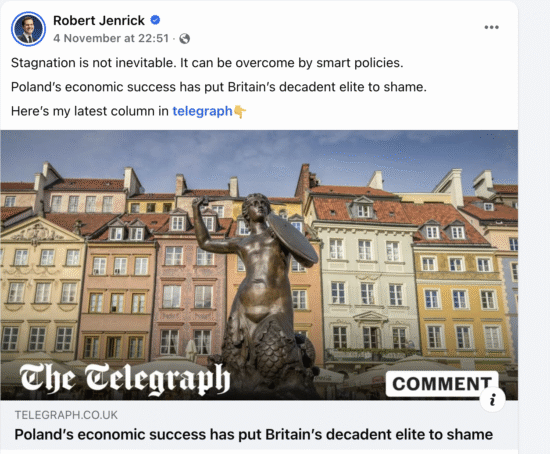 Jenrick argues that Poland’s success stems from long-term strategic planning and the willingness of its leaders to prioritise sustained growth. Britain, he warns, has grown accustomed to assuming prosperity rather than actively working for it.