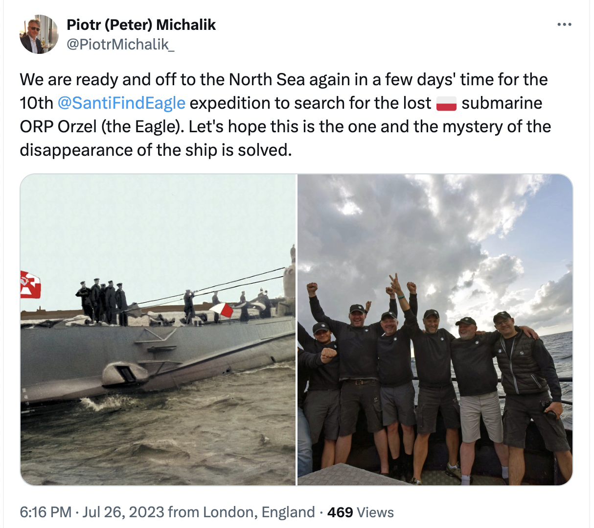 Although the SANTI Find the Eagle project has been active for nine years, the team remains as determined as at the start and persistently strives to succeed in reaching its goal. Preparations for this year’s expedition have been going on for a long time. After a 3-year break, mainly caused by the pandemic and problems with accessing the archives, the Polish crew is ready to return to the North Sea. Soon, at the beginning of August 2023, the tenth Expedition to Find the Eagle will set off from the port of Ijmuiden in the Netherlands, aimed at finding the wreck of the famous Polish submarine ORP Orzeł.