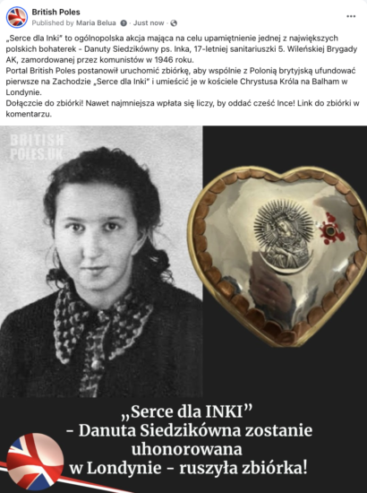 Link do zbiórki: https://www.gofundme.com/f/serce-dla-inki-polonia-brytyjska-uhonoruje-inke-w-londynie