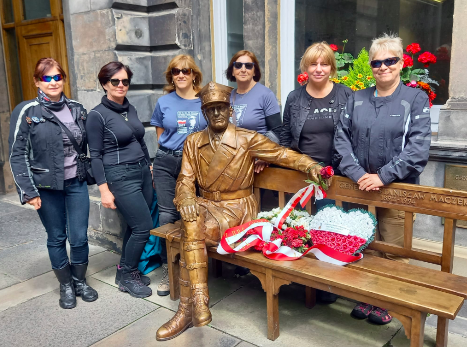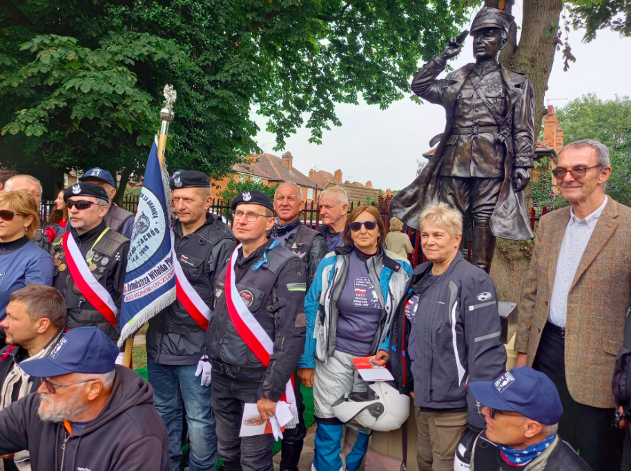 Na odsłonięciu pomnika generała Władysława Sikorskiego w Newark, mieliśmy przyjemność poznać polskich motocyklistów z grupy Wschód – Zachód – Motocyklowe Stowarzyszenie im. Witolda Pileckiego. Brali oni udział w Rajdzie im. Władysława Sikorskiego po Zjednoczonym Królestwie. Było ich 33 (6 Pań) i odwiedzili w ciągu 10 dni poprzedzających uroczystość najważniejsze polskie miejsca pamięci, przemierzając tysiące kilometrów. Byli pod Pomnikiem Katyńskim na cmentarzu Gunnersbury, w Instytucie Sikorskiego, w bunkrze RAF, Ognisku, Studium Polski Podziemnej, w Polskim Klubie w Kirkcaldy, pod obeliskiem ku czci gen. Sosabowskiego, w Domu Polskim w Glasgow. Odwiedzili pomnik Misia Wojtka w Edynburgu i usiedli na ławeczce gen. Maczka. Do Newark dotarli, by wziąć udział w uroczystościach odsłonięcia pomnika gen. Władysława Sikorskiego w 80. rocznicę jego tragicznej śmierci.