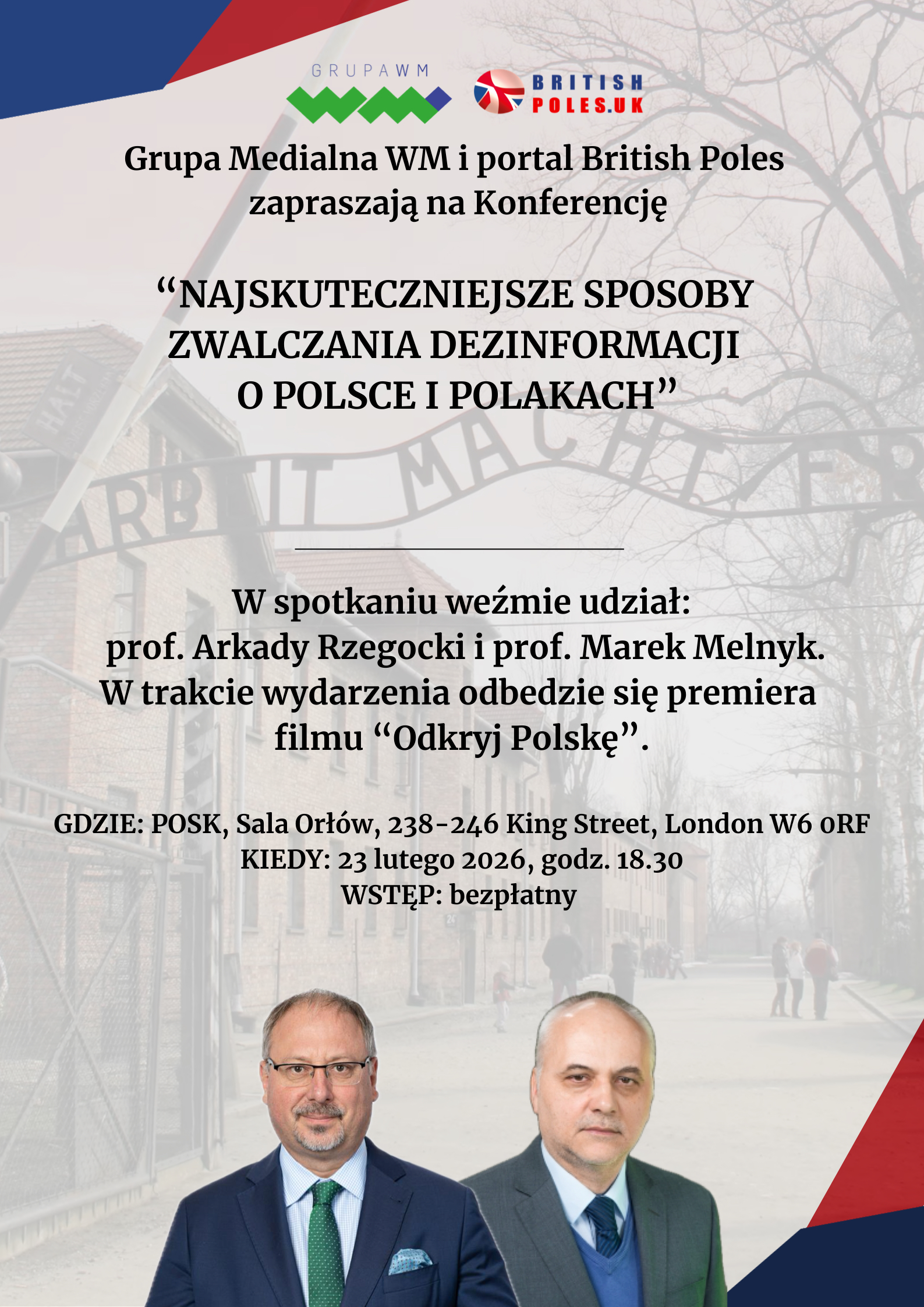 Grupa Medialna WM oraz portal British Poles organizują konferencję „Najskuteczniejsze sposoby zwalczania dezinformacji o Polsce i Polakach” poświęcona obronie dobrego imienia Polaków. Wydarzenie odbędzie się w w Polskim Ośrodku Społeczno-Kulturalnym POSK w Londynie.