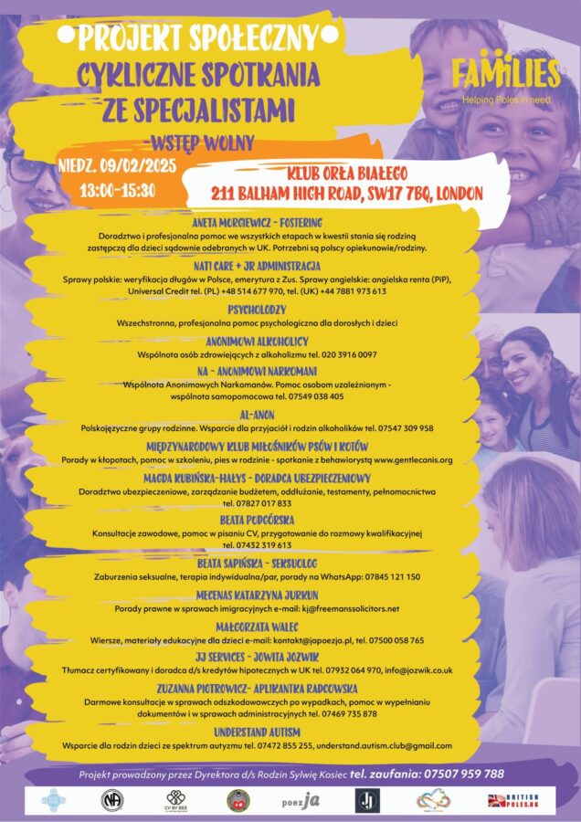 Wsparcie dla rodzin dzieci ze spektrum autyzmu tel. 07472 855 255, understand.autism.club@gmail.com
