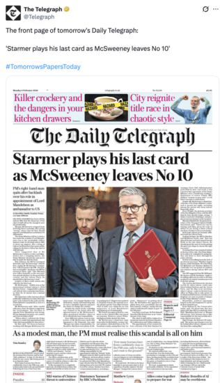 Starmer’s spokesperson said the prime minister was “upbeat and confident” and “concentrating on the job”, after Morgan McSweeney resigned as chief of staff on Sunday and No 10 communications director Tim Allan followed today.