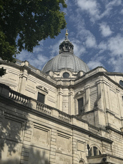 The Brompton Oratory, a stunning neoclassical Roman Catholic church dedicated to St. Philip Neri, is located in South Kensington. Construction began in 1878, with its striking dome completed in 1896 in a flamboyant Baroque style.