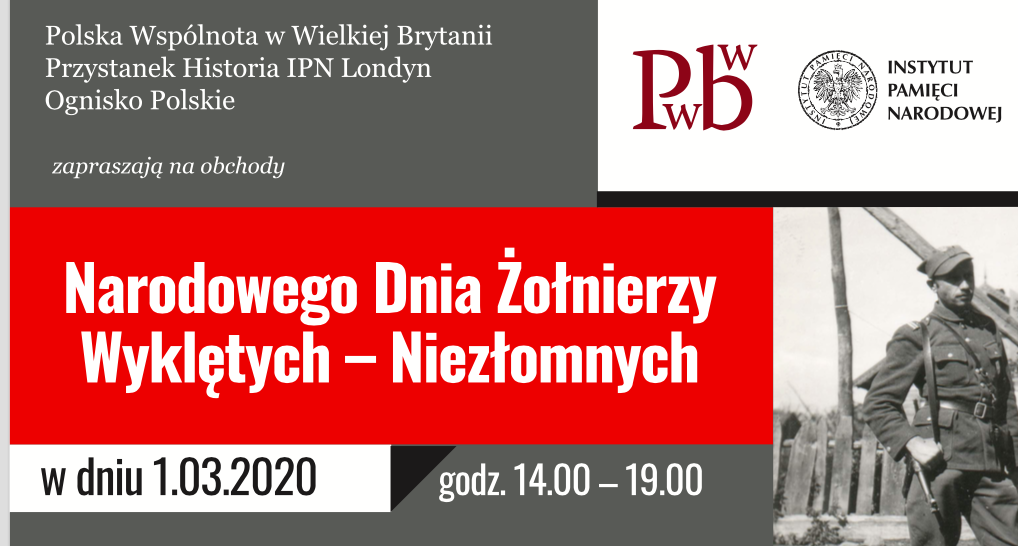 Polska Wspólnota w Wielkiej Brytanii – Przystanek Historia IPN Londyn oraz Ognisko Polskie w Londynie zapraszają na wydarzenie historyczne poświęcone Żołnierzom Wyklętym – Niezłomnym w dn. 1.03.2020 (niedziela) w godz.14.00-19.00 w Ognisku Polskim (55 Princes Gate, Exhibition Road, London SW7 2PN).