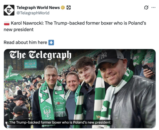 In a day-after Polish presidential election article, Telegraph’s Mark Almond writes that “the result of the Polish election is good for the West, but not for the EU project”.