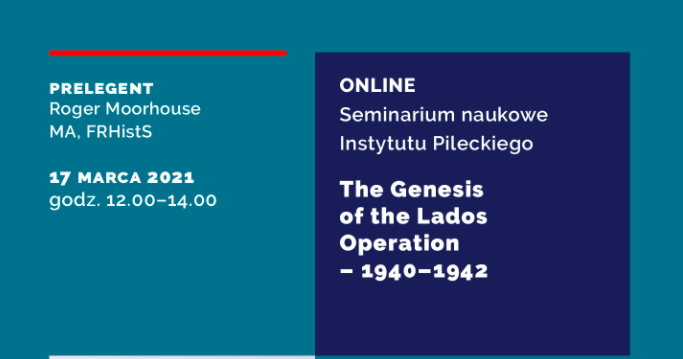 Instytut Pileckiego zaprasza na seminarium online, które odbędzie się w środę 17 marca 2021 na platformie zoom. Prelegent Roger Moorhouse (MA, FRHistS) zaprezentuje temat The Genesis of the Lados Operation – 1940-1942. Spotkanie będzie symultanicznie tłumaczone na język polski.