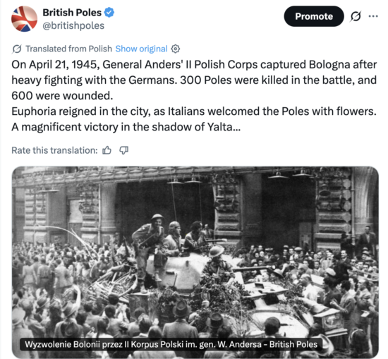On 21 April 1945, troops of the Polish II Corps entered the Italian city of Bologna, marking one of the final Allied victories on the Italian front and the last battle fought by the formation commanded by Władysław Anders. Although often overshadowed by earlier engagements such as Monte Cassino, the capture of Bologna represented a crucial strategic and symbolic achievement both for the Allied war effort and for the Polish soldiers fighting far from their occupied homeland.