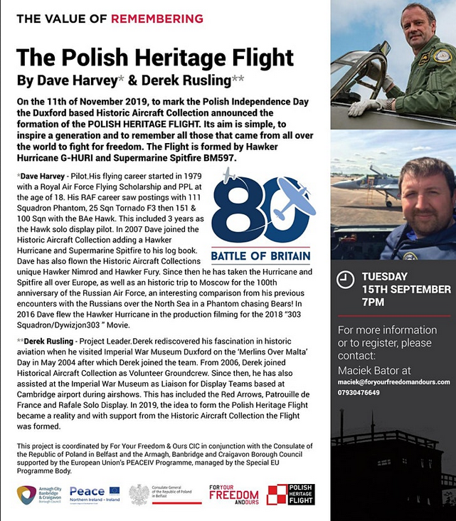 To mark the 80th anniversary of the #BattleOfBritain80 & the Polish involvement join Pilot Dave Harvey and Project Leader Derek Rusling to discover the remarkable story behind the Polish Heritage Flight.