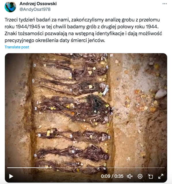 In an interview given to the Polish Press Agency (PAP), professor of forensic science at PUM Andrzej Ossowski explained that items found on the bodies of men women, and children buried in one of the mass graves indicate their Polish nationality. Another grave contains prisoners of war, most of whom belonged to the Red Army.