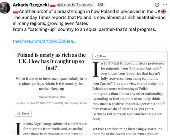 In his recent Sunday Times analysis, Tom Calver paints a striking picture of how Poland, once a source of economic migrants to Britain, is now emerging as a major European success story, even outpacing parts of the UK in prosperity and growth.