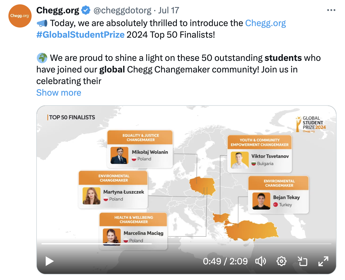 British Varkey Foundation (organiser of the prestigious World Student Prize, together with U.S. company Chegg.org) announced the list of the world’s 50 best students. A group of three Polish students: Martyna Łuszczek, Marcelina Maciąg and Mikołaj Wołanin, were listed among the elite.