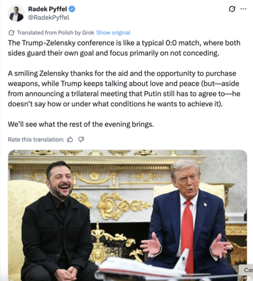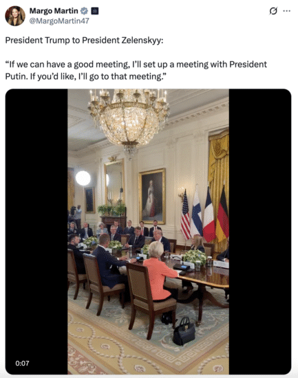 The president also revealed that he planned to hold a phone call with Vladimir Putin later that evening, after having been in “indirect contact” with the Russian leader before the Zelensky meeting. Trump suggested that a trilateral summit could be the key to halting the conflict: “If there’s no three-way meeting, the fighting will go on. If there is one, there’s a real chance for peace.” Zelensky confirmed he would be willing to attend such talks.
