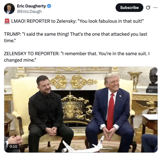In February, Glenn had criticised the Ukrainian leader for not wearing a conventional suit; on this occasion, he praised Zelensky’s attire, a compliment endorsed by Trump. Zelensky responded with humour, noting that he had changed his outfit, whereas Glenn had turned up in the same suit as before.
