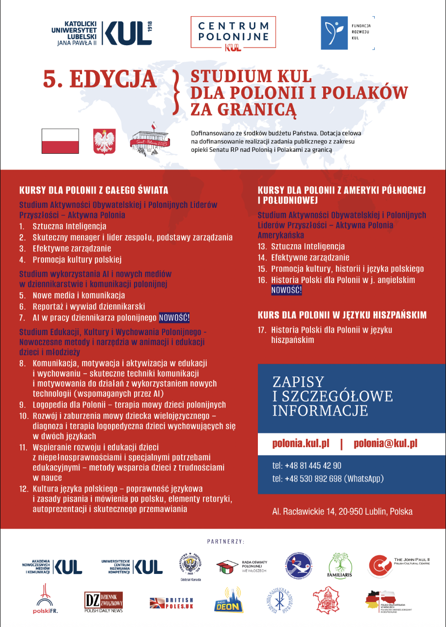 Rekrutacja w ramach piątej edycji trwa do końca września. Szczegółowe informacje i zapisy na stronie polonia.kul.pl.