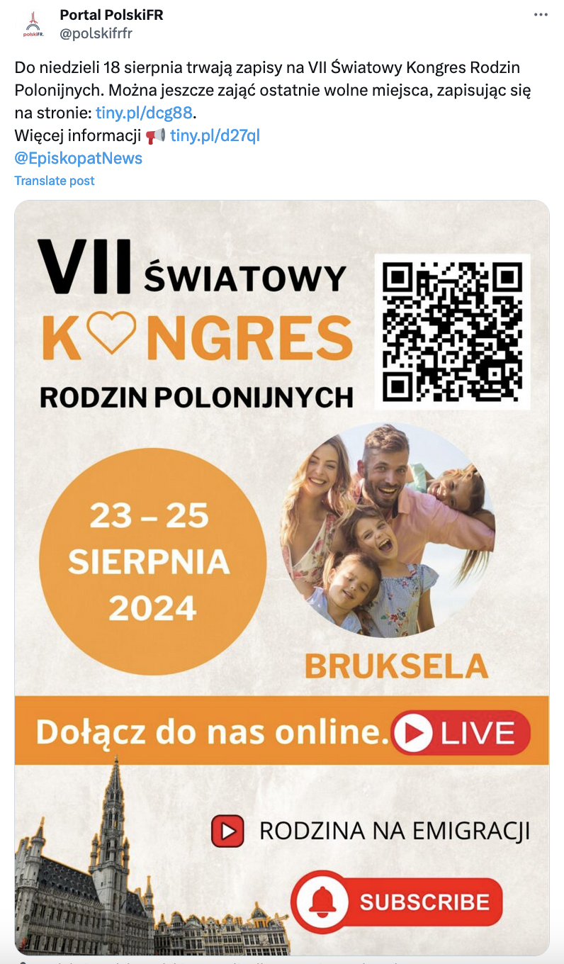 Istnieje również możliwość zdalnego uczestnictwa w Kongresie. Większość wydarzeń można śledzić poprzez transmisję online na kanale Rodzina na Emigracji: https://www.youtube.com/@rodzinanaemigracji. Należy w tym celu subskrybować kanał, aby dostawać powiadomienia o dostępnych transmisjach.