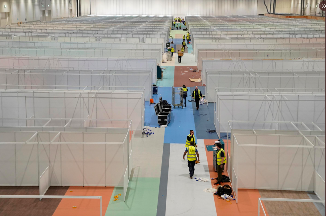 Jak podała stacja BBC powołując się na wewnętrzny dokument ministerstwa obrony, szpital na terenie Narodowego Centrum Wystawienniczego (NEC) w Birmingham ma mieć pojemność 5 tys. łóżek, zaś ten w centrum konferencyjnym w Manchesterze – tysiąca. W budowie obu będzie uczestniczyć armia i oba mają być gotowe do połowy kwietnia.