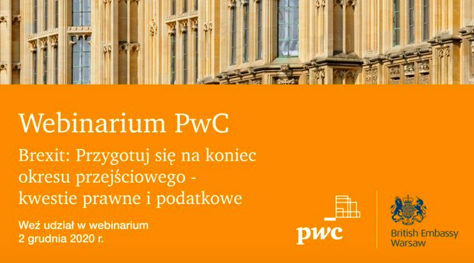 PWC Polska zaprasza do udziału w bezpłatnym webinarium, podczas którego polscy oraz belgijscy eksperci prawni i podatkowi wskażą, na co należy zwrócić uwagę, aby móc bez zakłóceń kontynuować współpracę gospodarczą z Wielką Brytanią po 31 grudnia 2020 r.