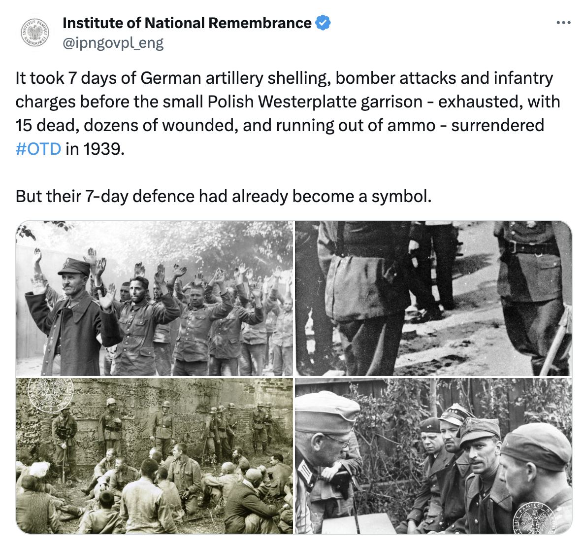 The commander of the German army, General Friedrich Eberhardt, in recognition of the valour of the Polish soldiers, allowed Major Sucharski to wear an official uniform and keep his sabre.