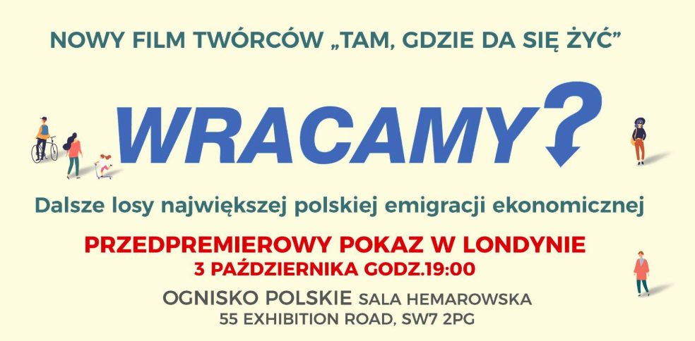 Ambasada Polska w Londynie, TV Polonia i Magazyn z Wysp zapraszają serdecznie na przedpremierowy pokaz filmu „WracaMy?”, który został nakręcony w oparciu o rozmowy z przedstawicielami tzw. młodej emigracji ekonomicznej, która wyjechała do Wielkiej Brytanii i Irlandii po przystąpieniu Polski do UE.