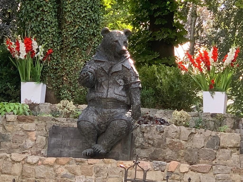 POZNAŃ – 30.09.2018 w poznańskim Nowym Zoo stanął pomnik niezwykłego niedźwiedzia – Kaprala Wojtka. Darczyńcą figury jest pani Krystyna Wieczorek, autorka książki pt „Miś Wojtek Wspaniały” wraz z rodziną Państwa Jaśkowskich, a pomysłodawcą pomnika jest Mariusz Jaśkowski. Skąd wziął się pomysł? Oto co nam odpowiedział Rzecznik poznańskiego Zoo: ,,Pomysł, by w naszym Zoo upamiętnić to zwierzę wziął się stąd, że od 2013 w poznańskim Zoo działa azyl dla niedźwiedzi a ulica prowadząca do dyrekcji Zoo od 2 lat nosi nazwę właśnie Kaprala Wojtka. Azyl to miejsce spokojnej starości dla niedźwiedzi po traumatycznych przejściach, po wykorzystywaniu ich w cyrkach lub po latach spędzonych w niewoli w niewłaściwych warunkach. W poznańskim zoo dom znalazło 7 niedźwiedzi brunatnych, każdy z nich ma do dyspozycji wybieg o powierzchni kilku tys. m2 lasu (4,5- 8 tys m2) z basenem. Cały azyl liczy sobie 3,5 ha lesistego, pagórkowatego terenu. Czują się u nas tak dobrze, że po latach, kiedy nie mogły żyć w zgodzie ze swoją naturą, zimą zapadają w prawdziwy zimowy sen, a jedna z niedźwiedzic, Gienia, sama kopie sobie gawrę w ziemi na wybiegu, choć pierwsze 13 lat swojego życia żyła tylko na maleńkim, betonowym wybiegu.” A potem dodaje z żalem … „Wielka szkoda, że kiedy Kapral Wojtek przechodził po wojnie na wojskową „emeryturę”, nie było jeszcze wówczas tego rodzaju ośrodków dla zwierząt” (…). ,,Poznańskie ZOO ma jedyny w Polsce azyl dla niedźwiedzi i nie ma więc lepszego miejsca na uhonorowanie kaprala Wojtka”.